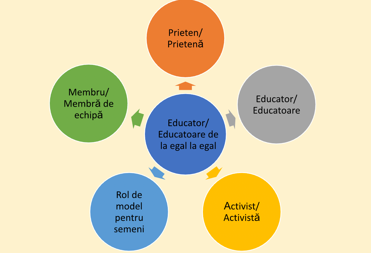 • afla ce funcții principale are educatorul/educatoarea de la egal la egal și mentorul/mentora echipei de educatori de la egal la egal.