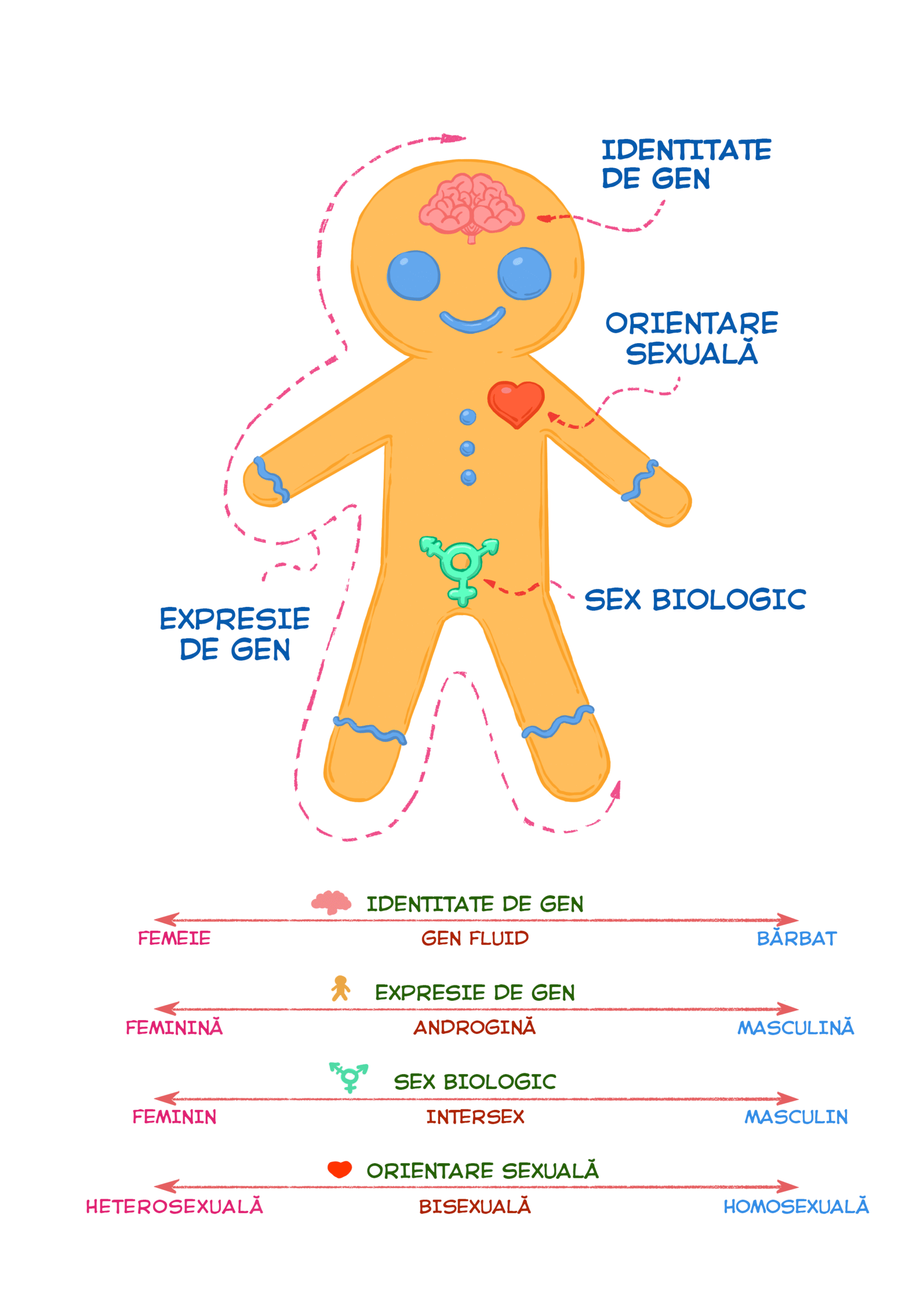 Utilizarea corectă a termenilor asociați înțelegerii genului este o modalitate de a semnala acceptarea. Vă invităm să studiați cu atenție glosarul de termeni referitori la identitatea de gen.